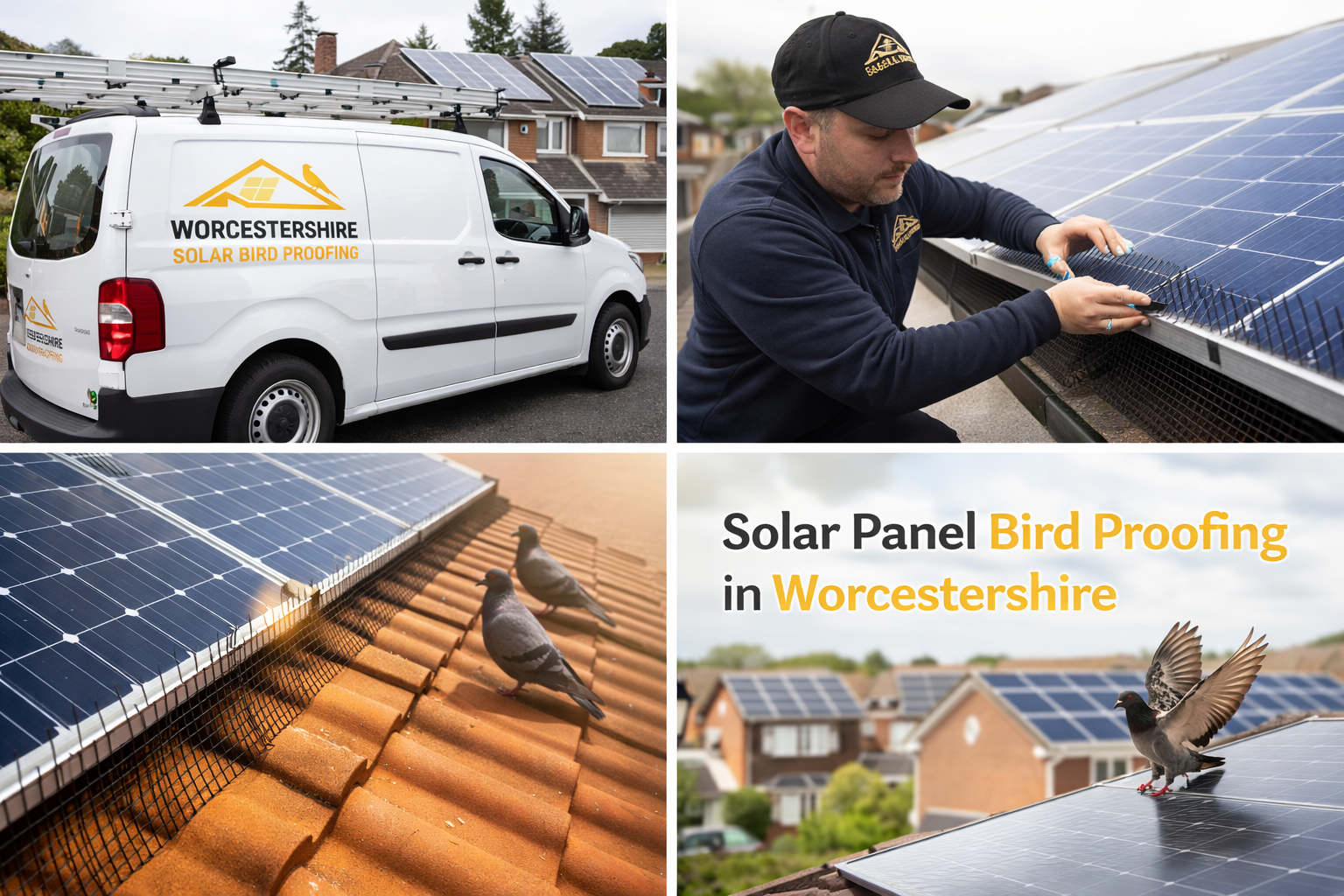 At Worcestershire Solar Bird Proofing, we specialise in protecting your property from the damage and disruption caused by nuisance birds. Whether you’re dealing with pigeons nesting beneath your solar panels or unsightly bird droppings affecting your home or business, our experienced team delivers reliable, long-lasting solutions across Worcestershire and the surrounding areas.